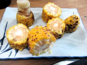 合わせて目の前にあった「とうもろこし」を焼いてもらいました。夏の最高の組み合わせですね。