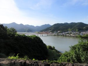 早速、登城です。「新宮城」は熊野川沿岸の小高い丘に見える「丹鶴山」と呼ばれる山に築かれた平山城。現在は多くの石垣のみですが江戸末期には白漆喰で仕上げられた土塀に囲まれ、櫓、天守が美しく映える優美な城だったそうです。
