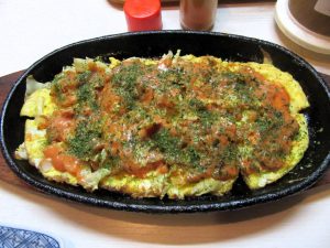 「きく焼」。豚バラとキャベツを卵で包んである素朴な品ですが、かかっているオーロラソースも相まってビールが良く進みます。