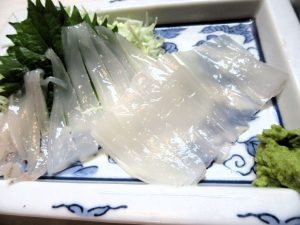せっかく紀伊半島の先端に来たからには魚介もと思いましたが、あいにく、この日の鮮魚は「赤イカ」のみ。当然ですが‥