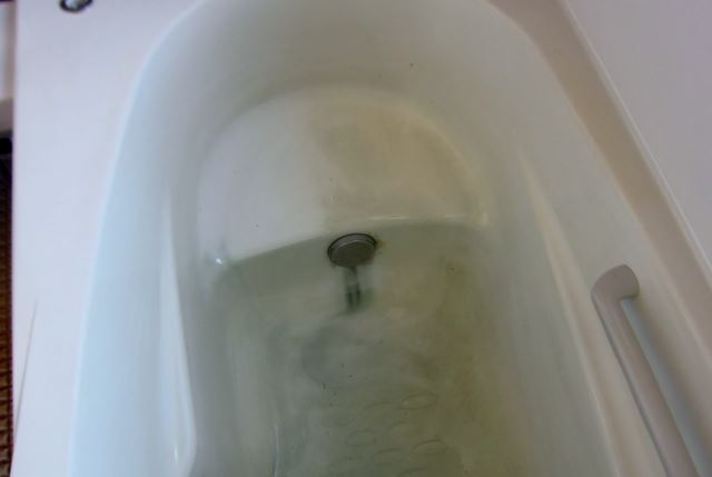 浴槽と洗い場床に付着した汚れは漢方系の入浴剤かと思われます。こうなると何をしても落とす事は出来ません。カラーコーティングと専用シートでリフィニッシュさせました。