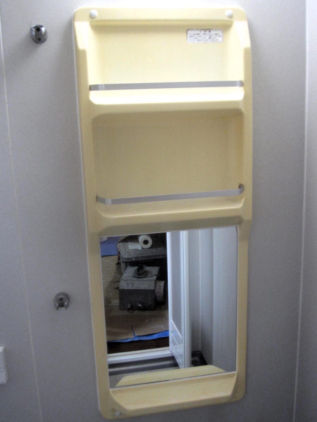 ユニットバスのカラーステンレス浴槽とミラーキャビネットをキレイにしたいとの、ご相談です。カラーコーティングでアイボリー色に仕上げました。