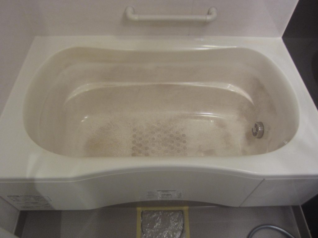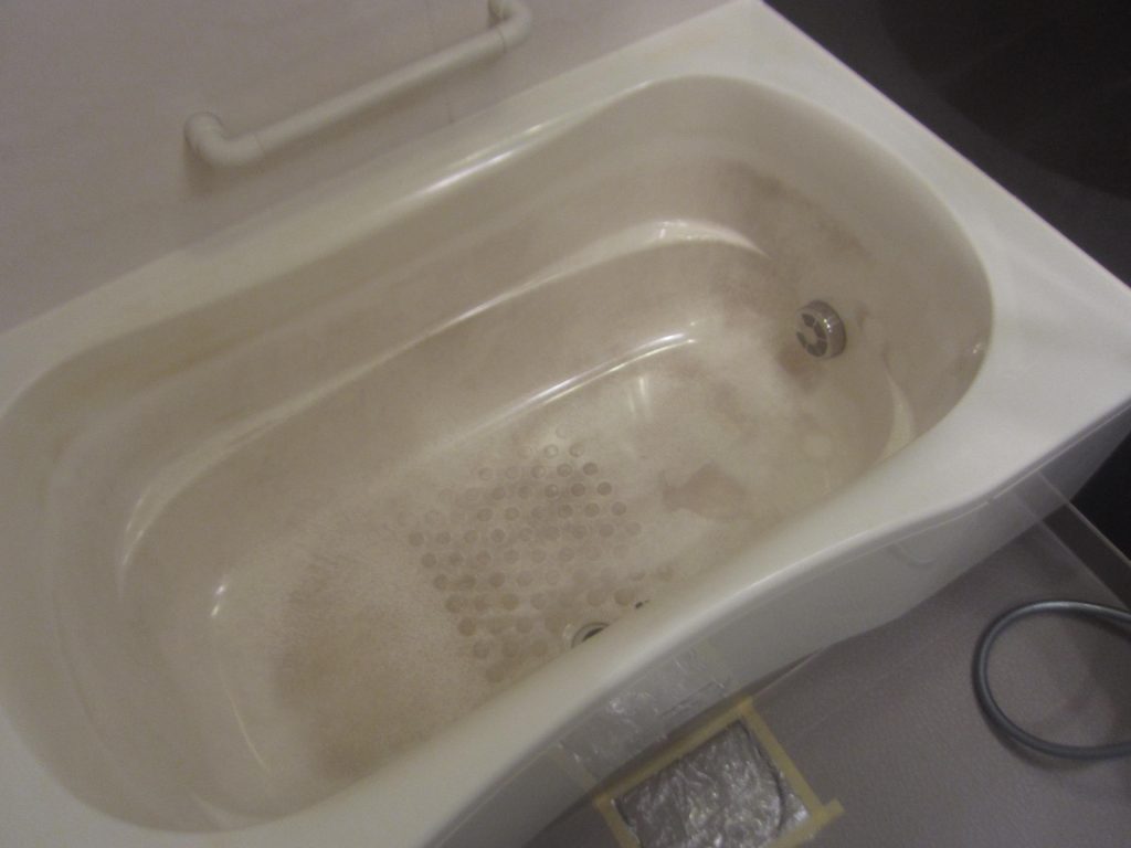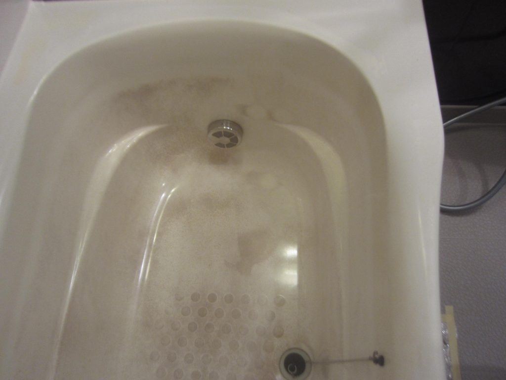 かなりの汚れが染み込んでしまったFRP浴槽。クリーニングでは除去できません。カラーコーティングで原状回復です。