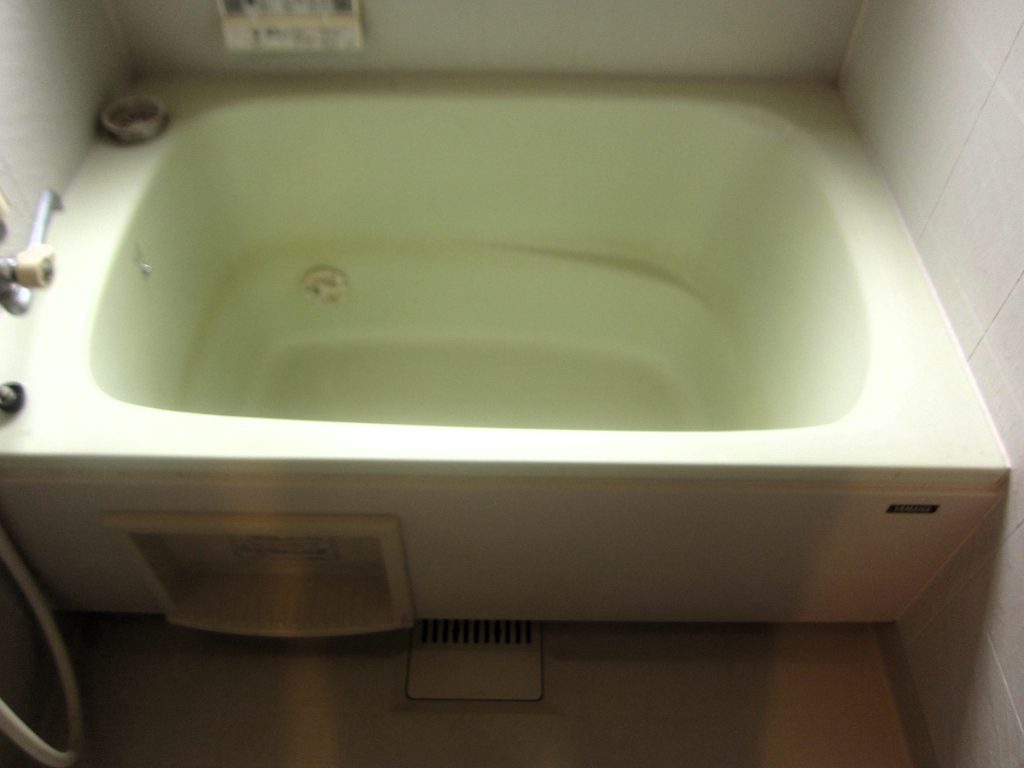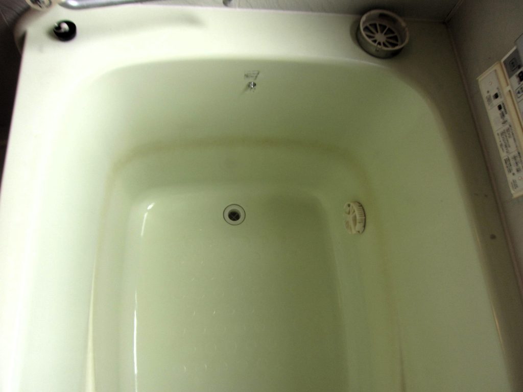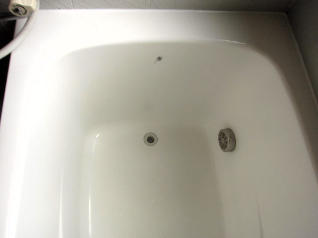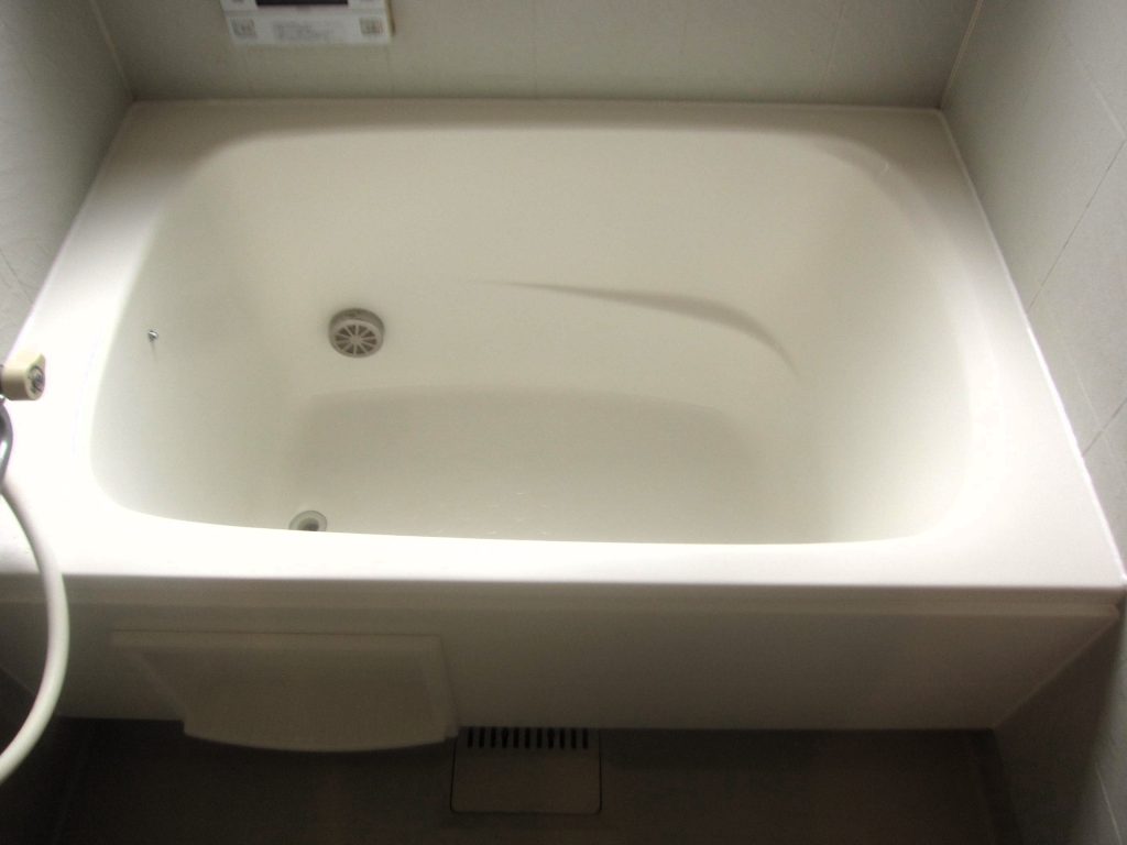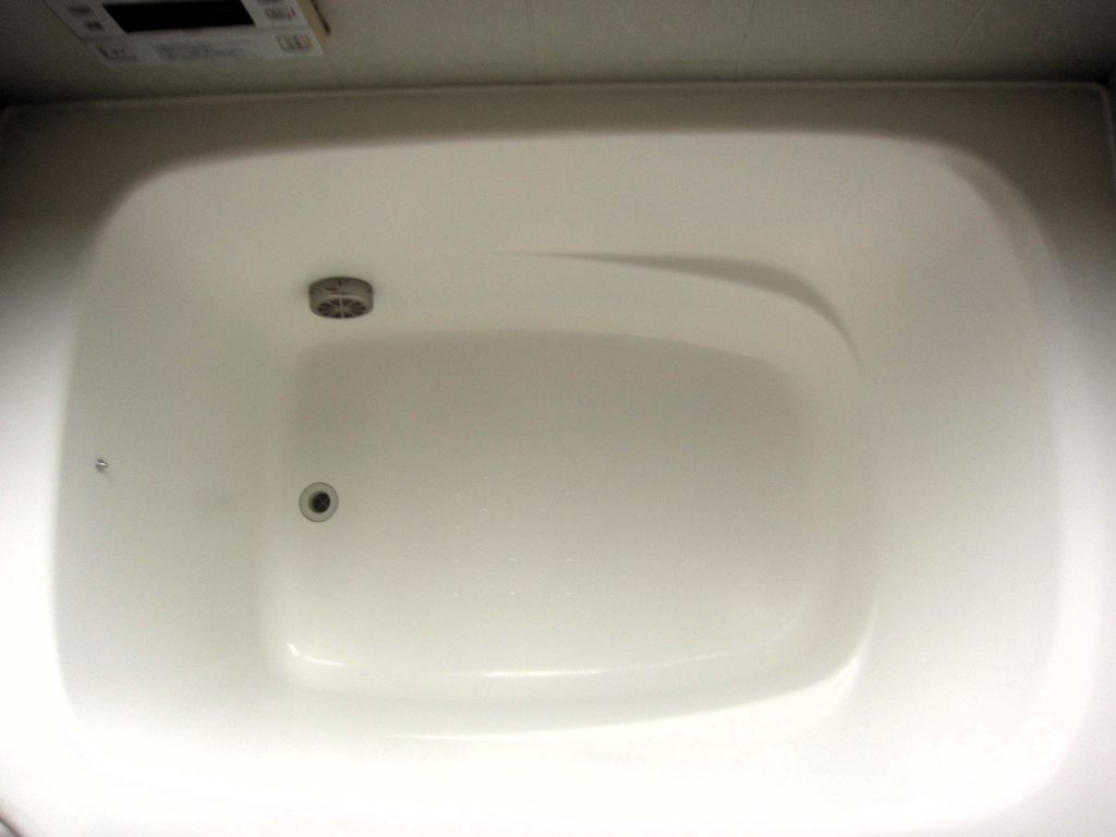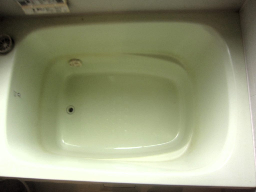 FRP浴槽の水溜まり線が気になります。色も白に変えたいとの事。カラーコーティングで対応いたしました。